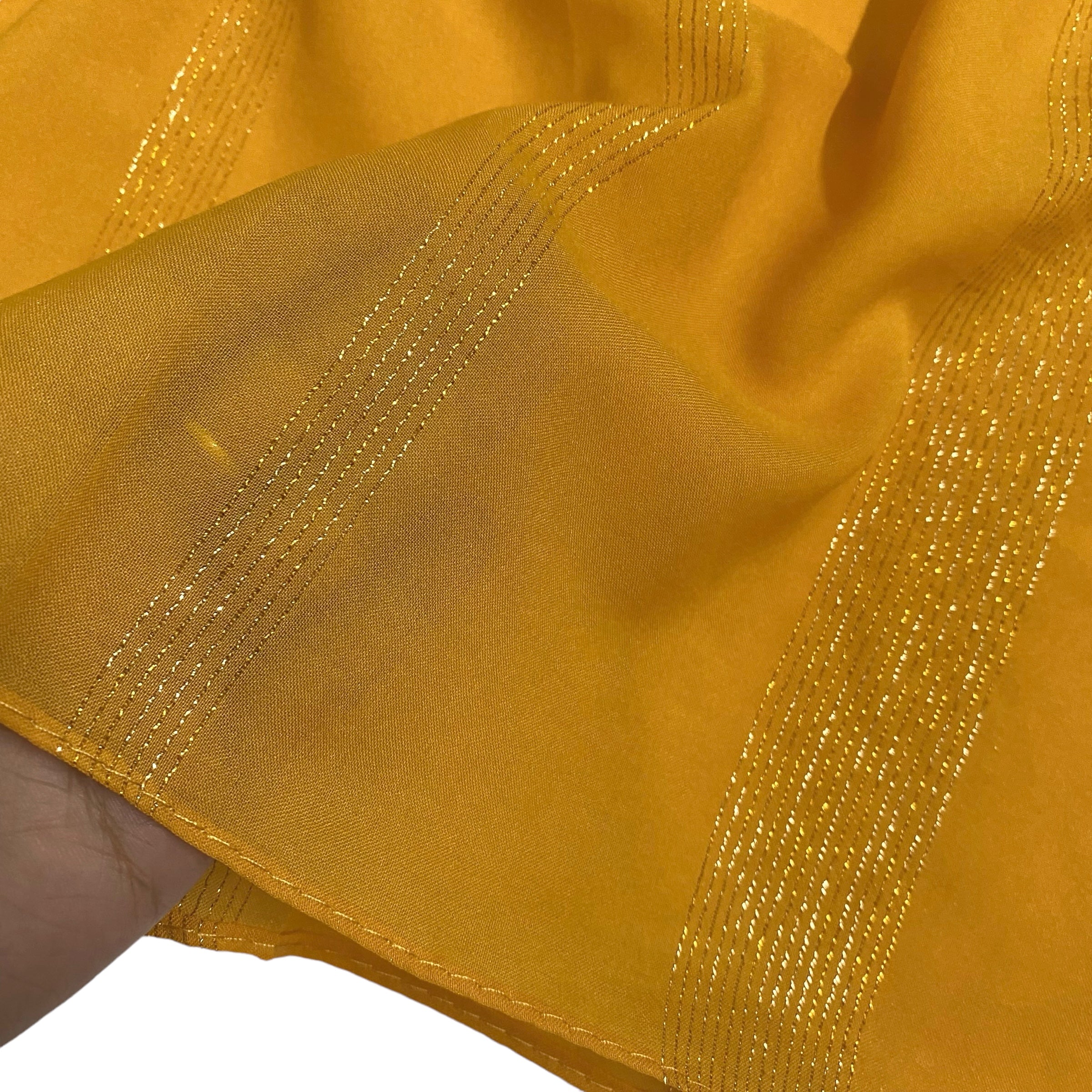 Parallel Vertical Gold thread all over the hijab with stitching on all 4 sides.