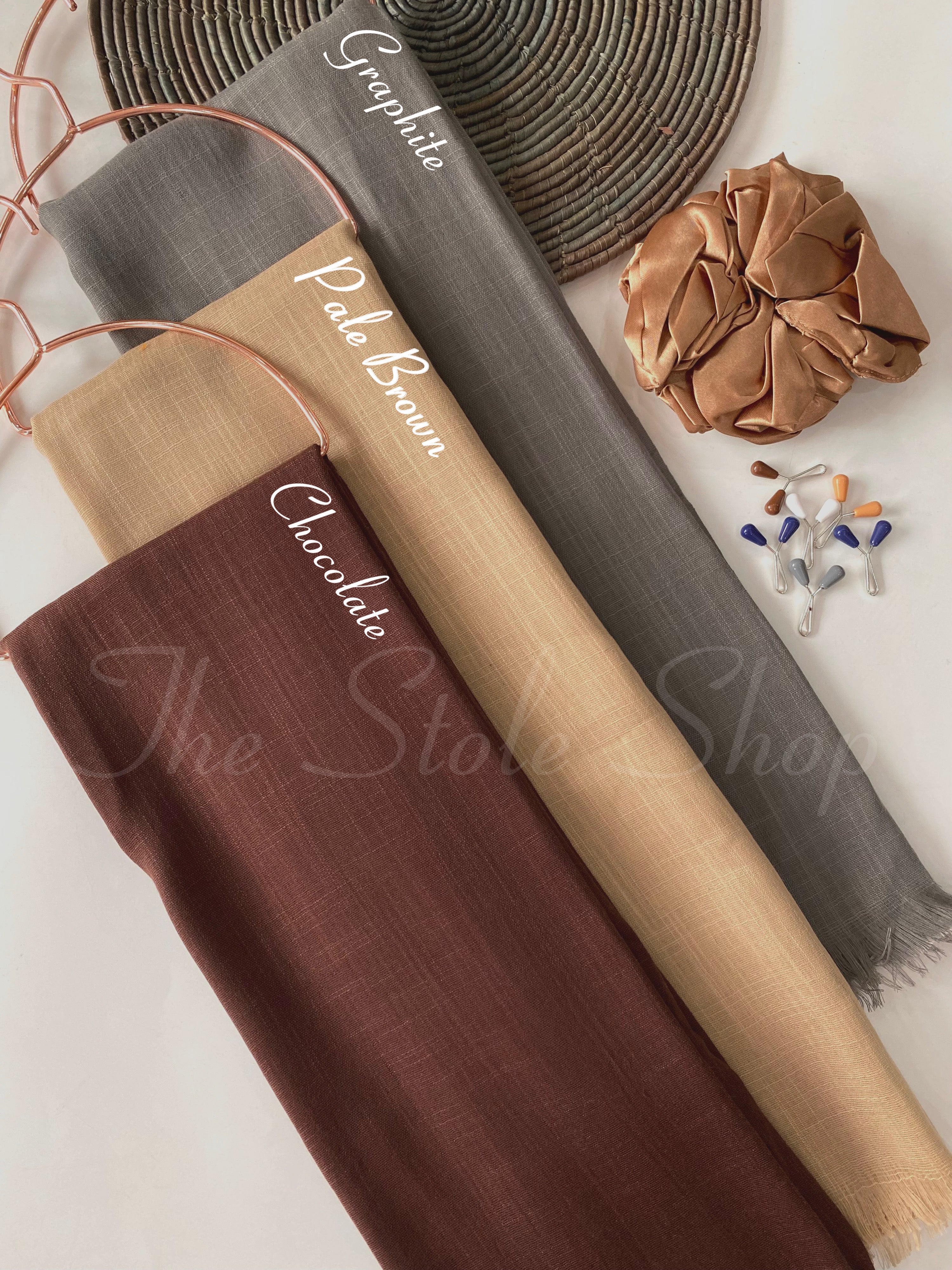Premium Turkish Self Textured Hijab Bundles with a scrunchie and a pack of 6 grippers.