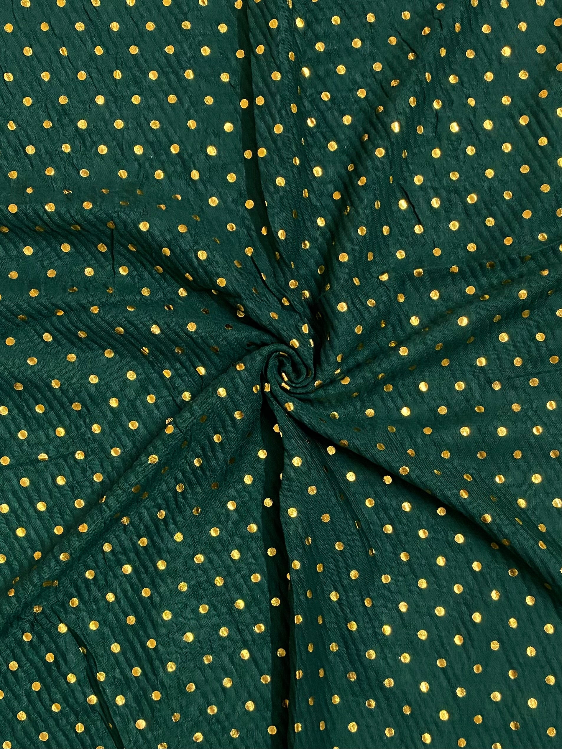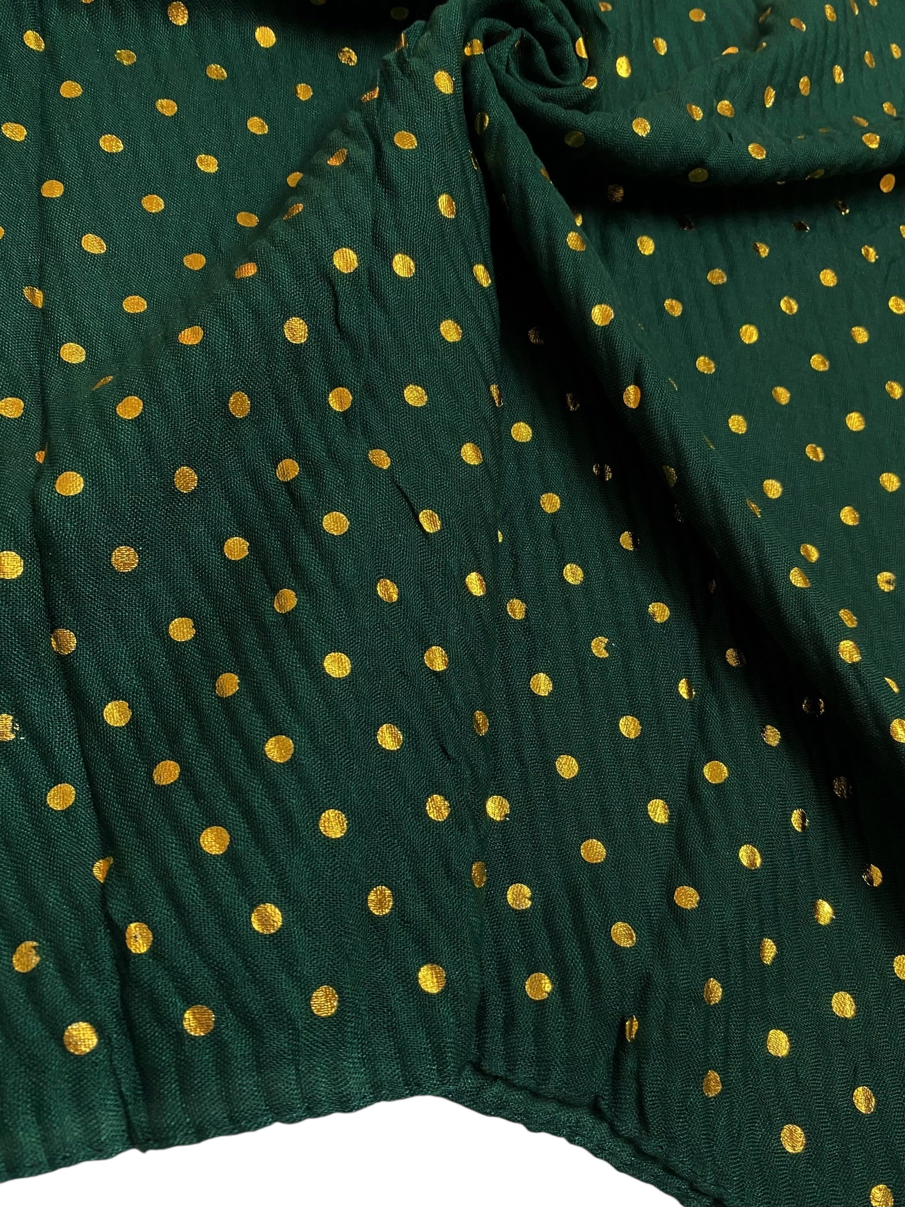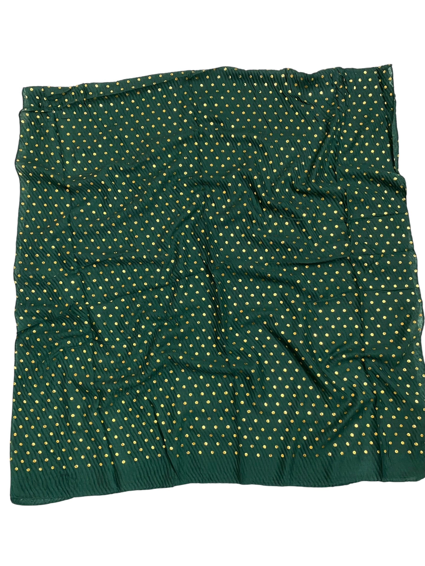 Pleated hijab with gold foil polka dots all over with stitching on all four sides
