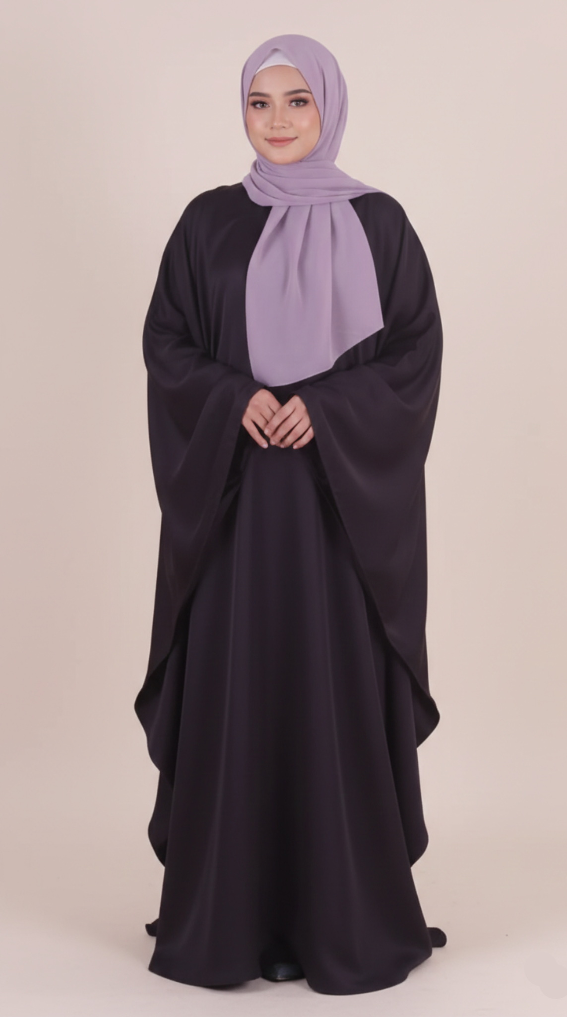 Introducing our Premium Nada Fabric Butterfly Cut Abaya. Its butterfly cut design and full baggy style ensures comfort and modesty. Featuring a round neckline and button closure, wearing this abaya is effortless and stylish.