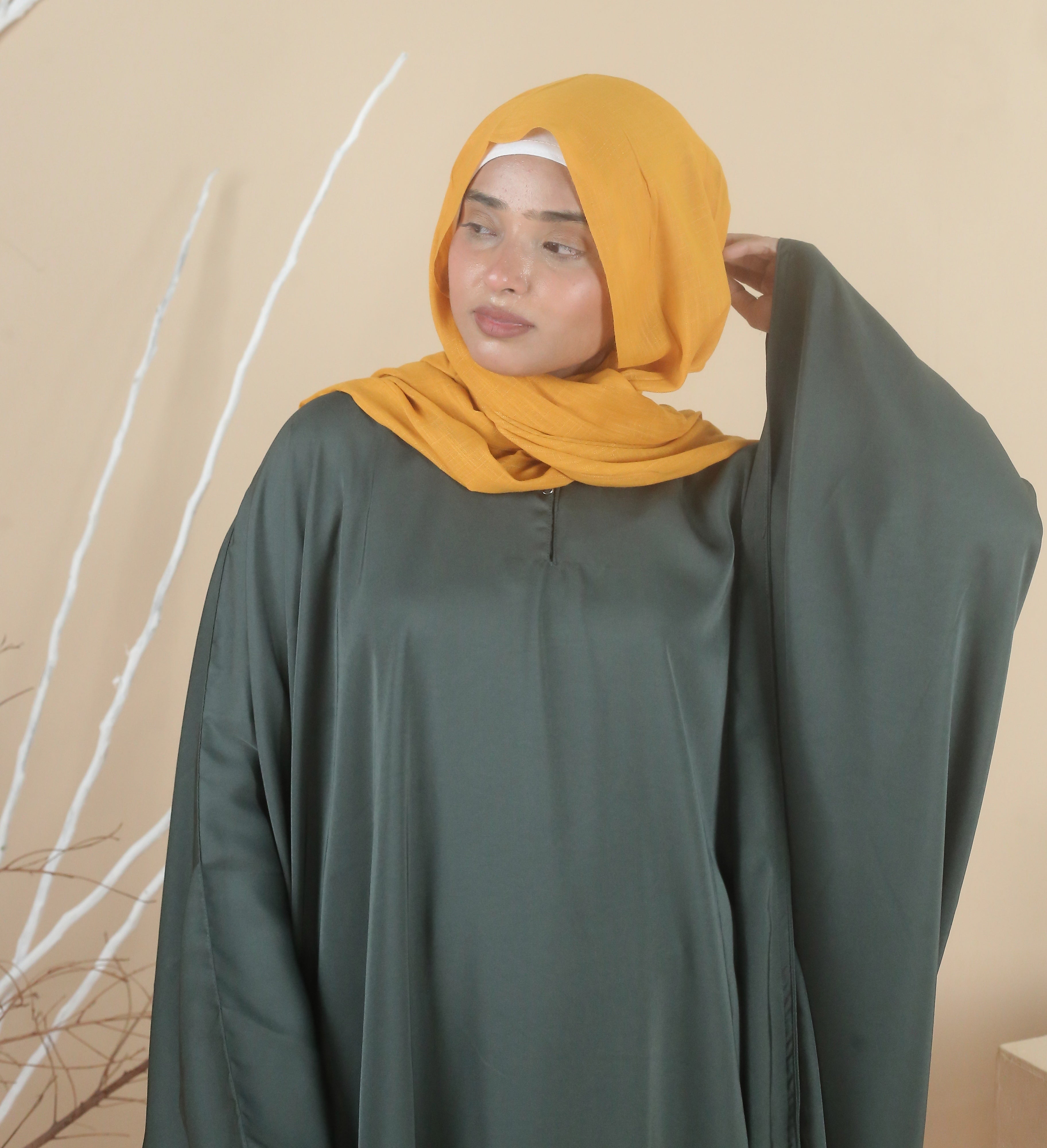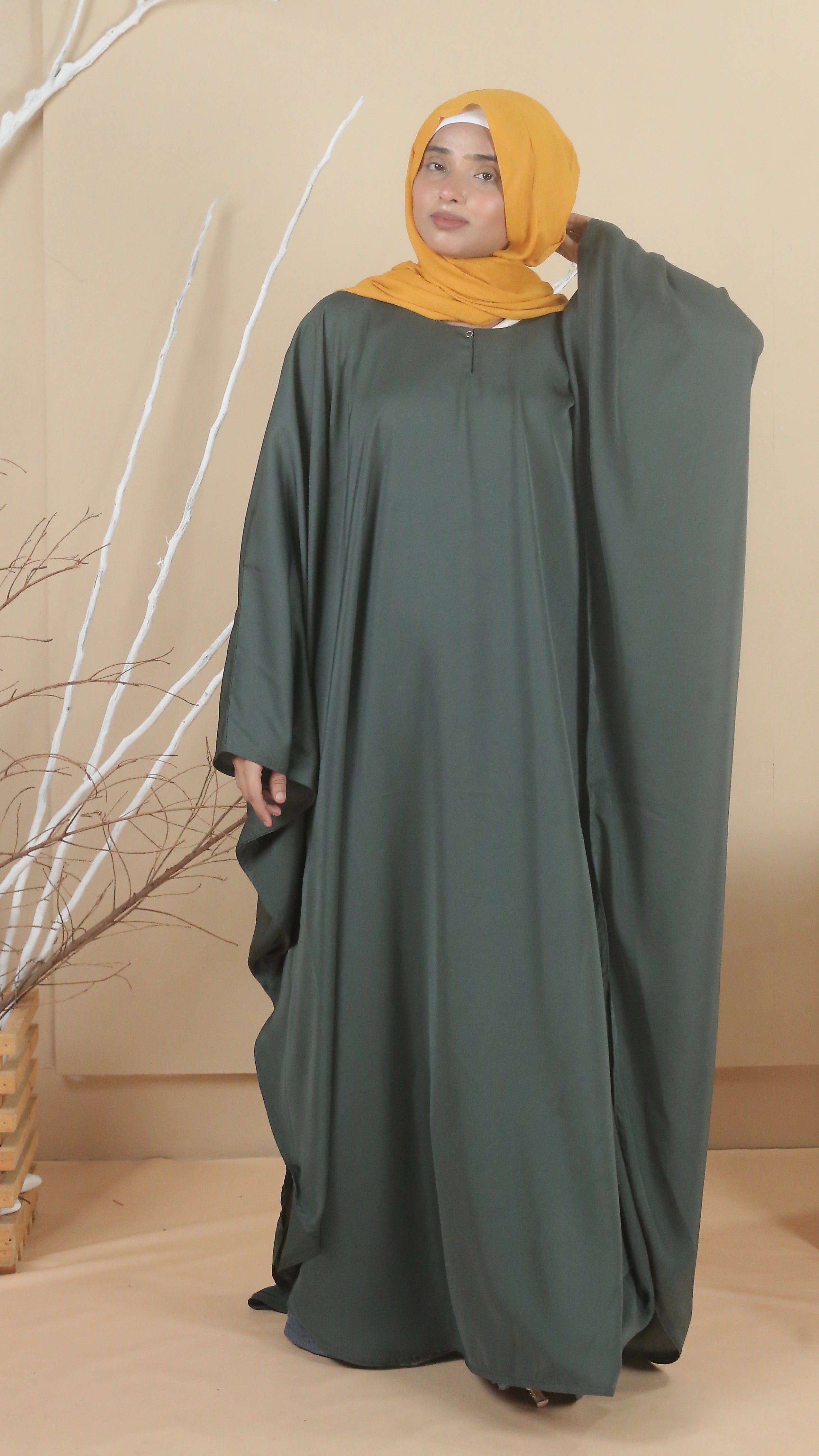 Introducing our Premium Nada Fabric Butterfly Cut Abaya. Its butterfly cut design and full baggy style ensures comfort and modesty. Featuring a round neckline and button closure, wearing this abaya is effortless and stylish.