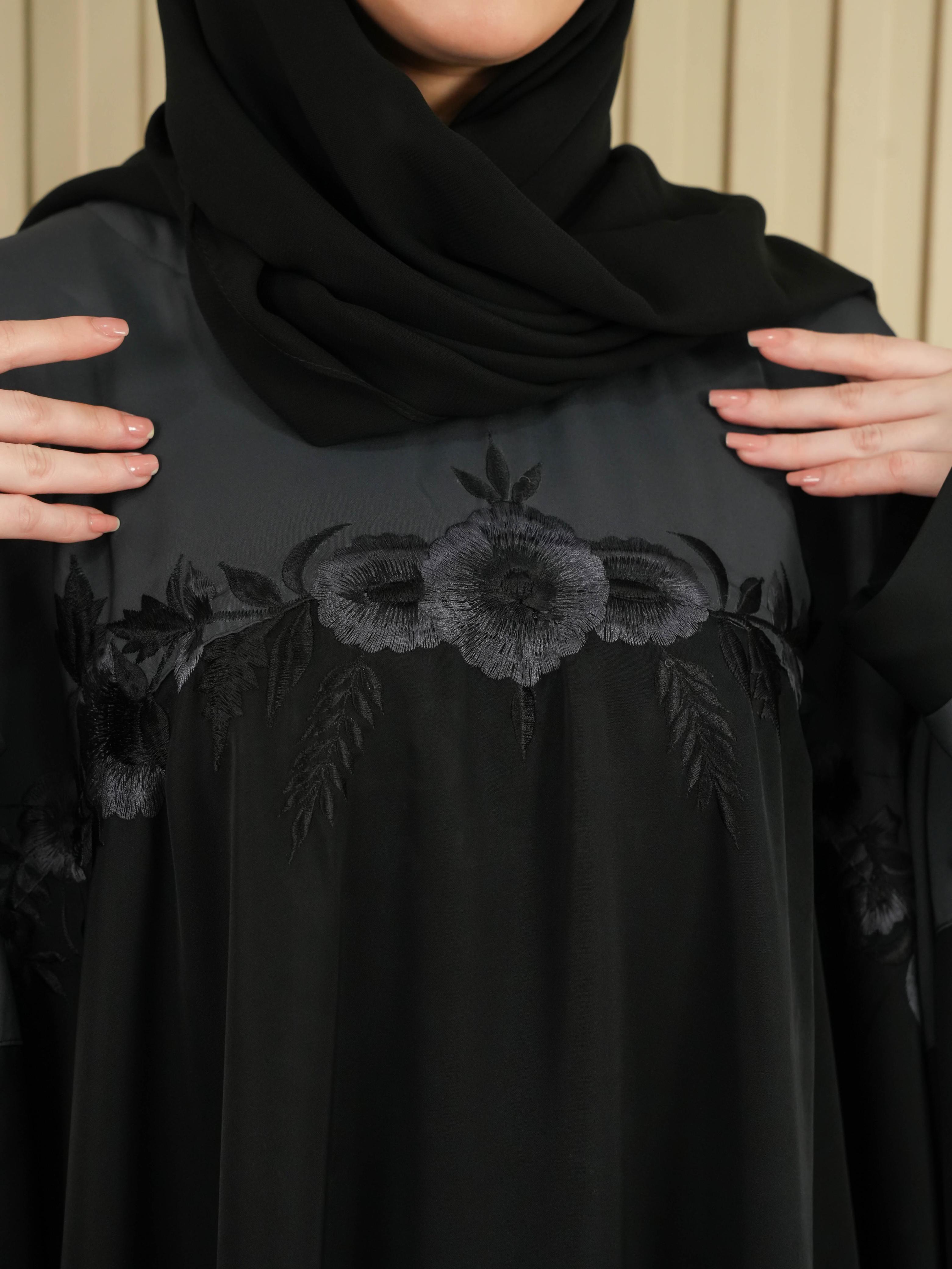 Flora Abaya - Charcoal (With Free Delivery) Flora Abaya - Charcoal (With Free Delivery)