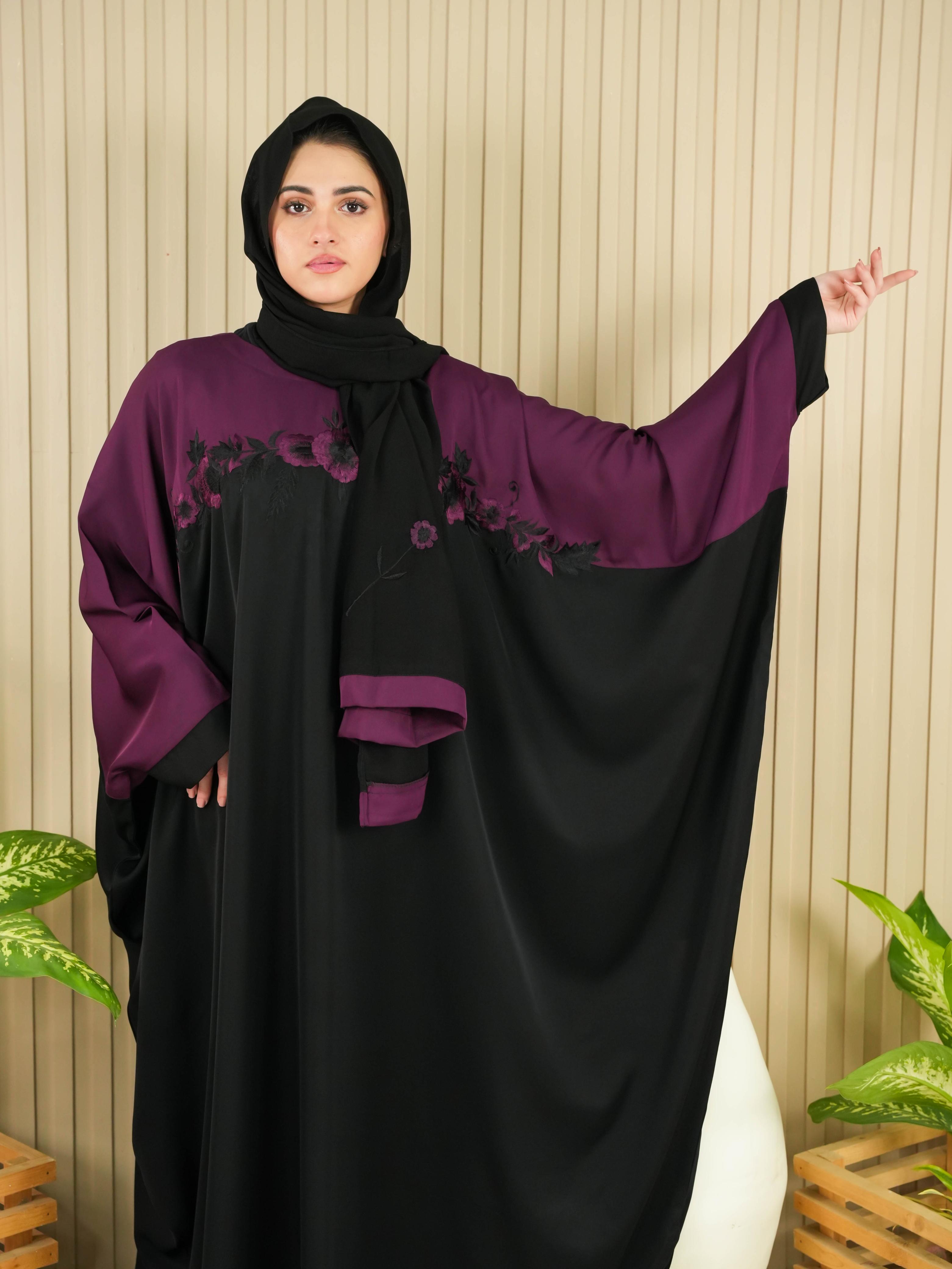 Flora Abaya - Eggplant (With Free Delivery) Flora Abaya - Eggplant (With Free Delivery)