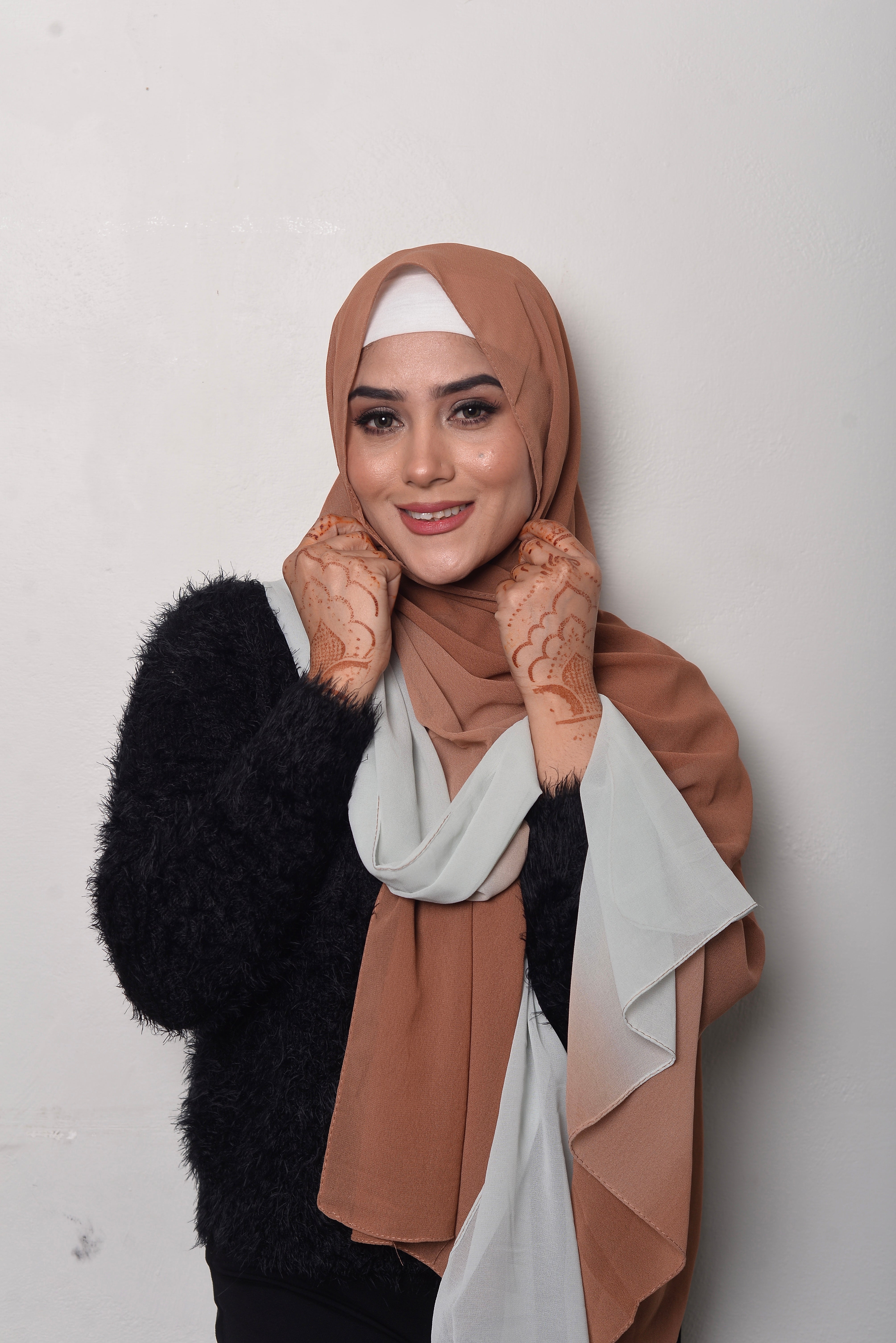 Vertically 2 tone dyed light wear chiffon hijabs with stitching on all four sides.