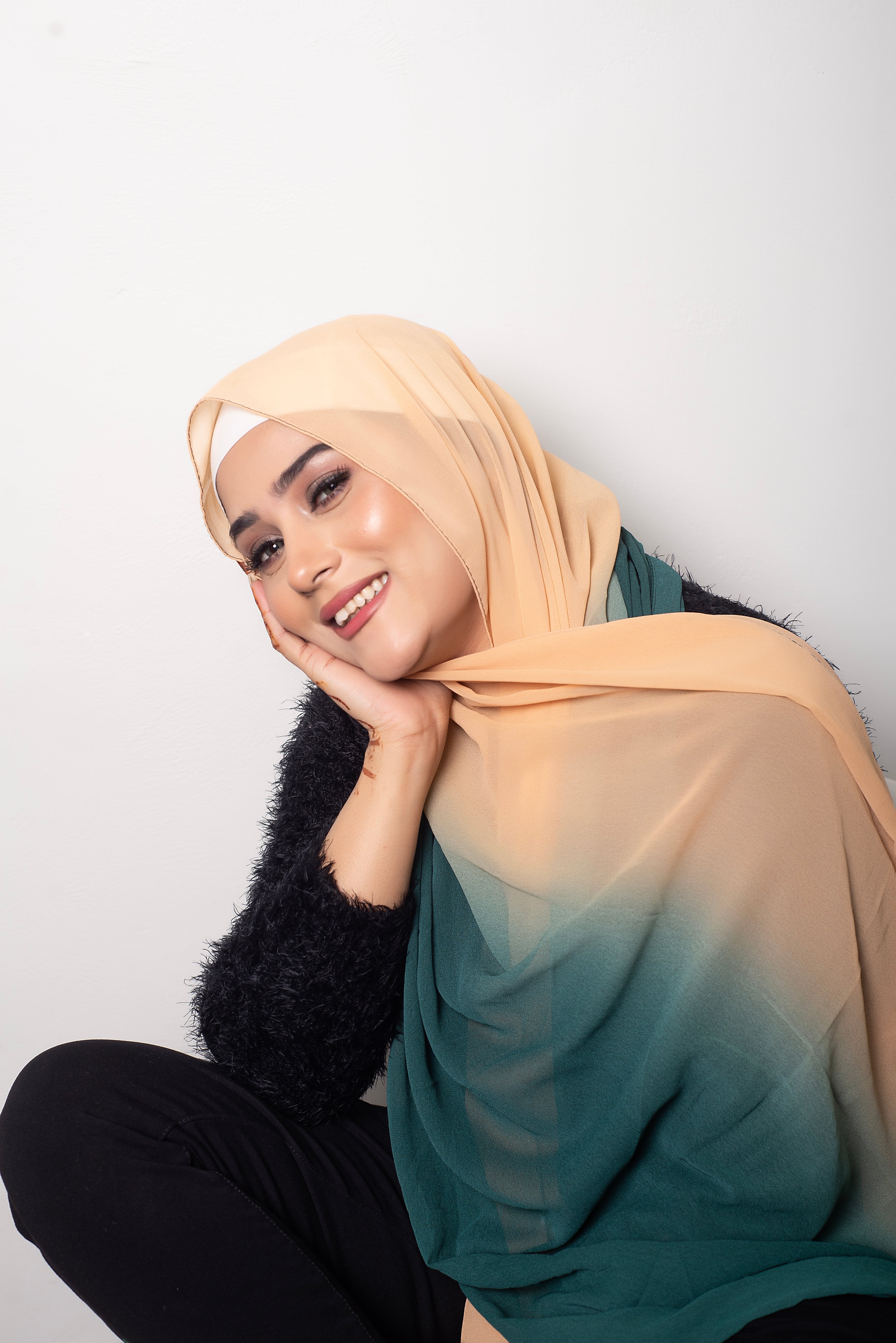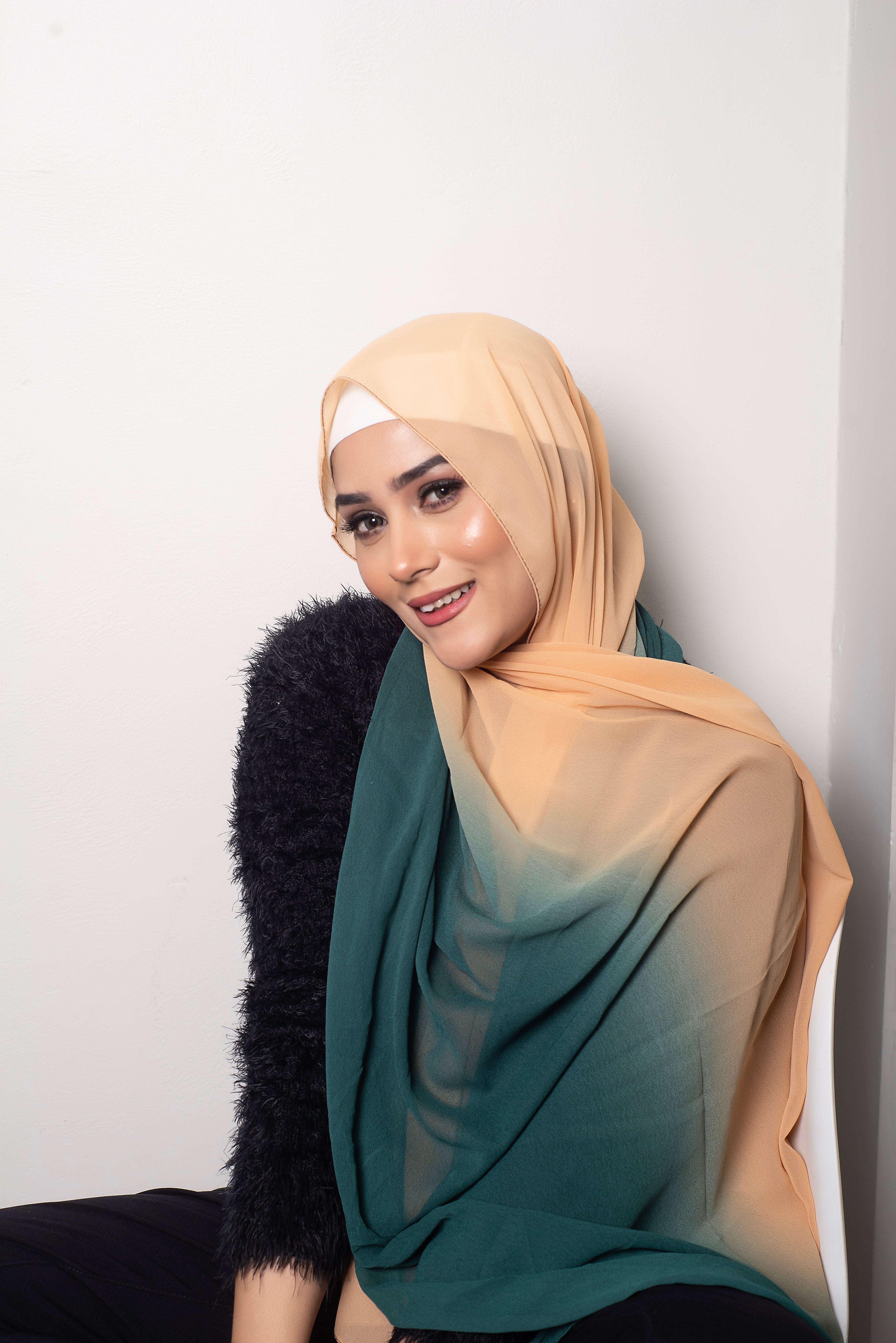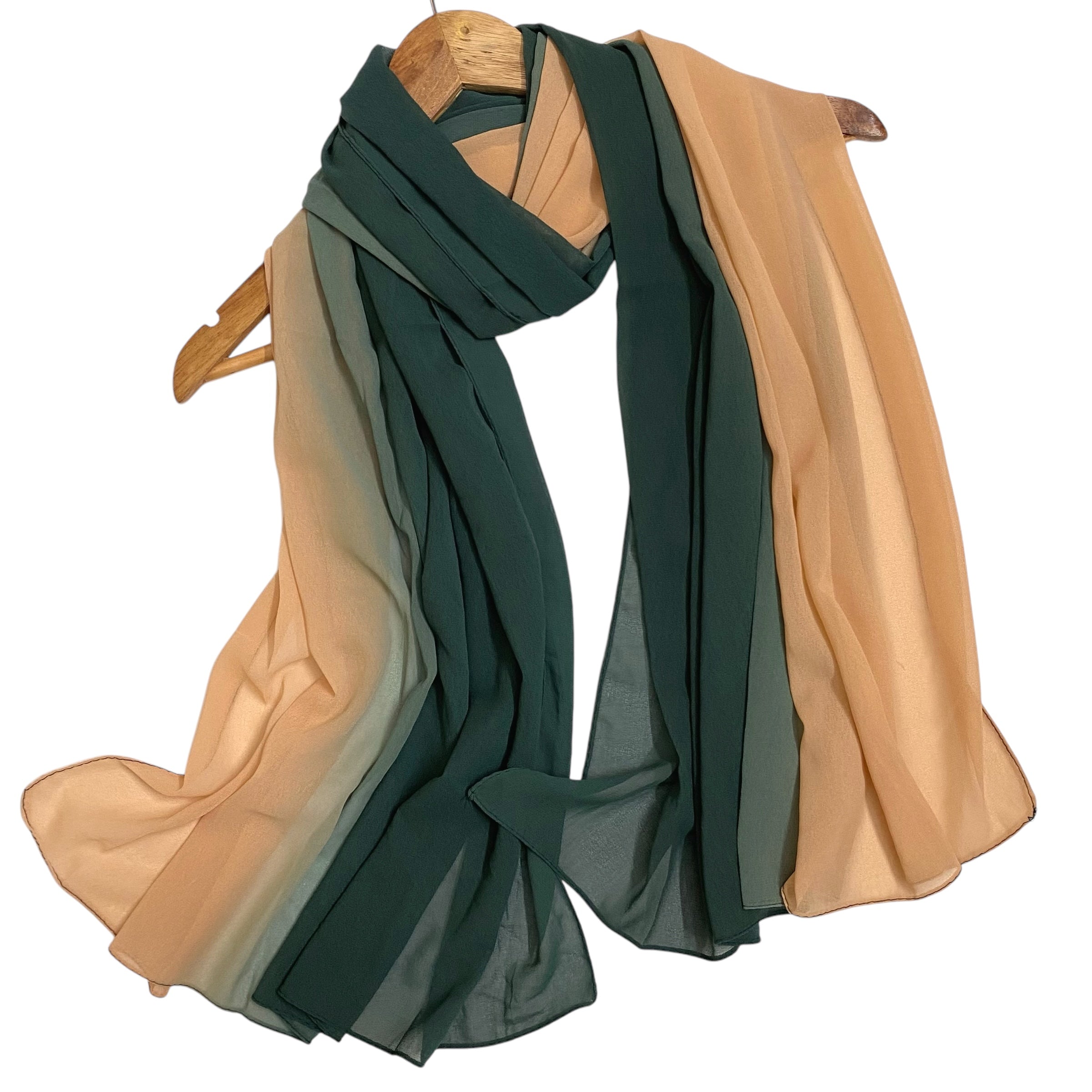 Vertically 2 tone dyed light wear chiffon hijabs with stitching on all four sides.