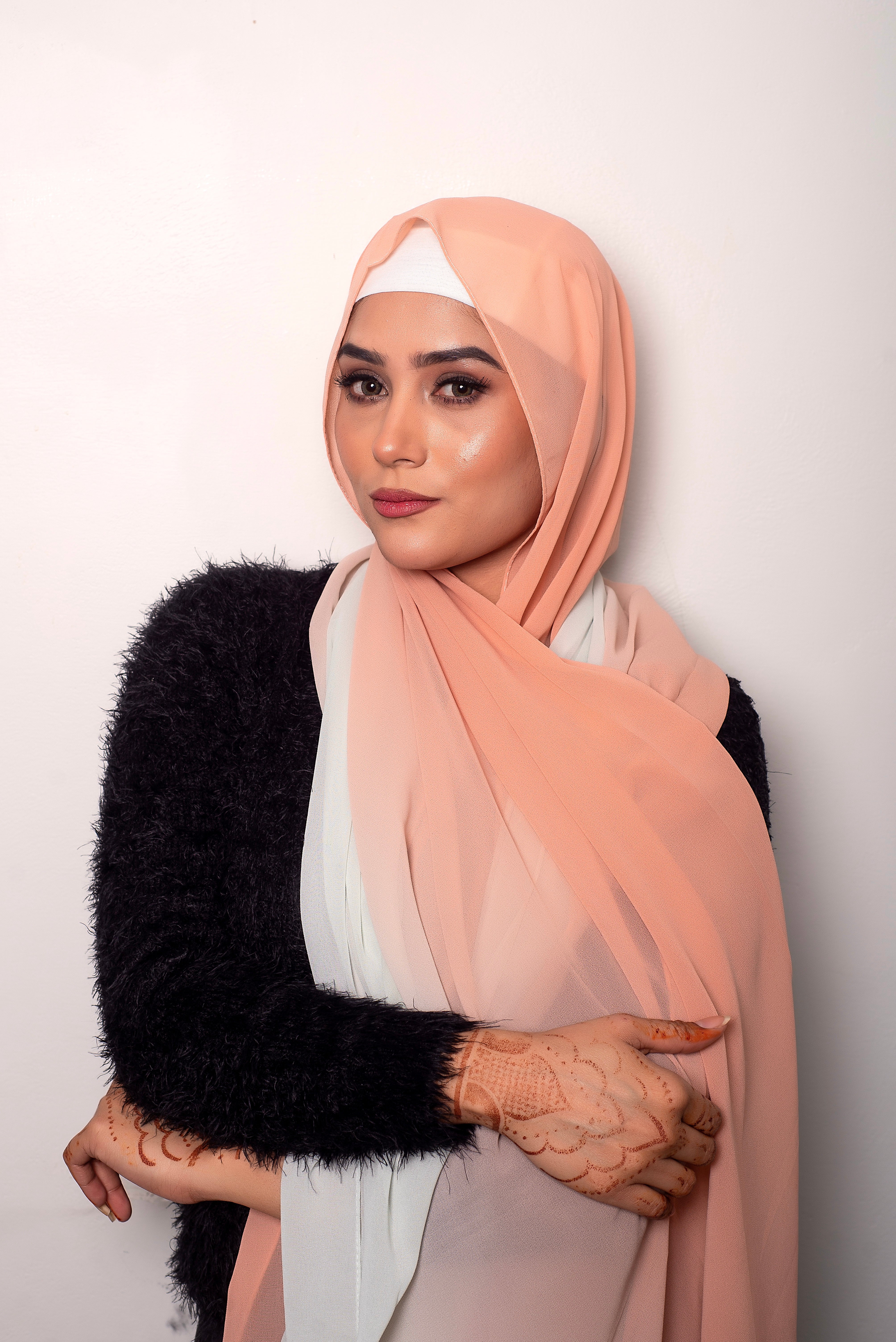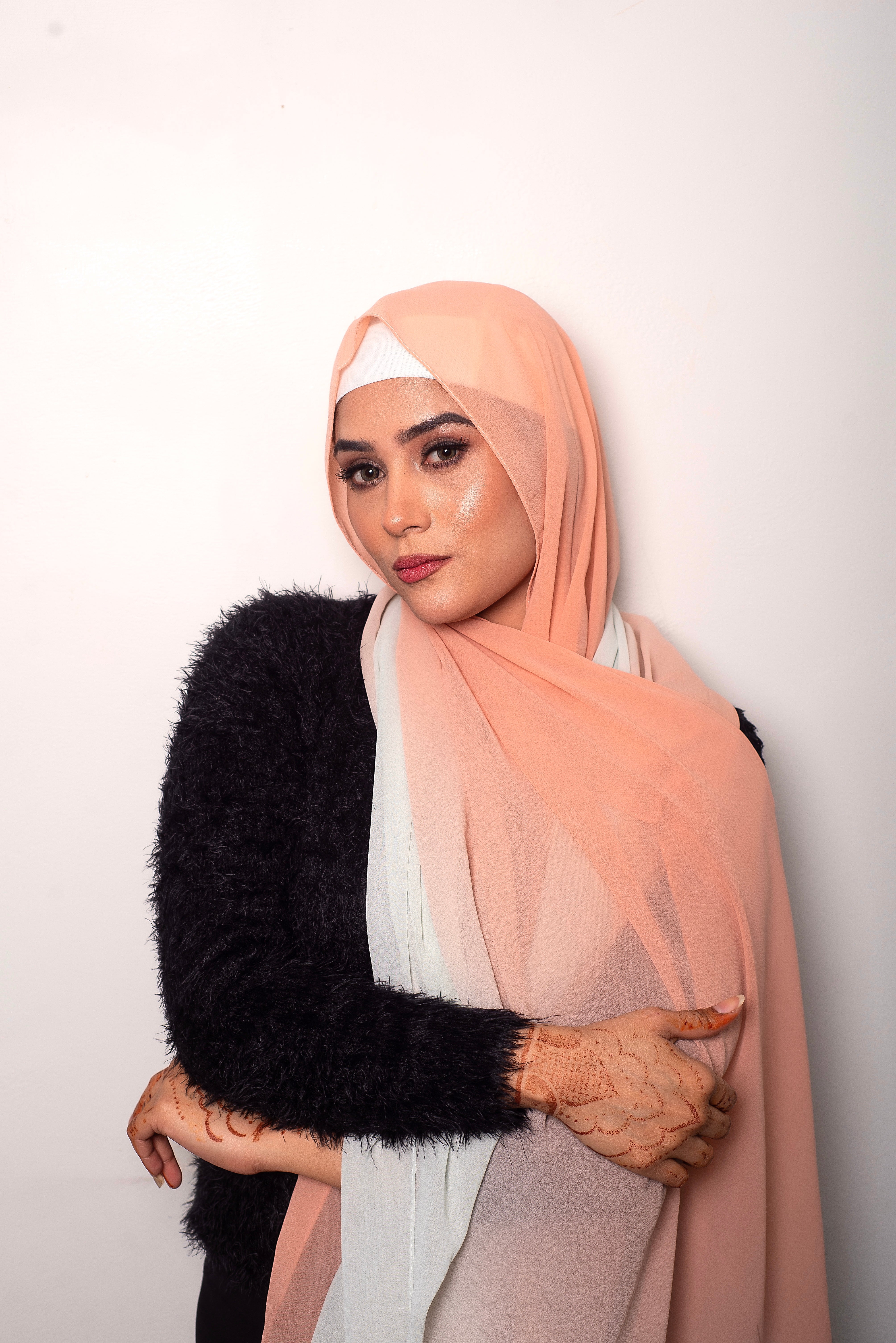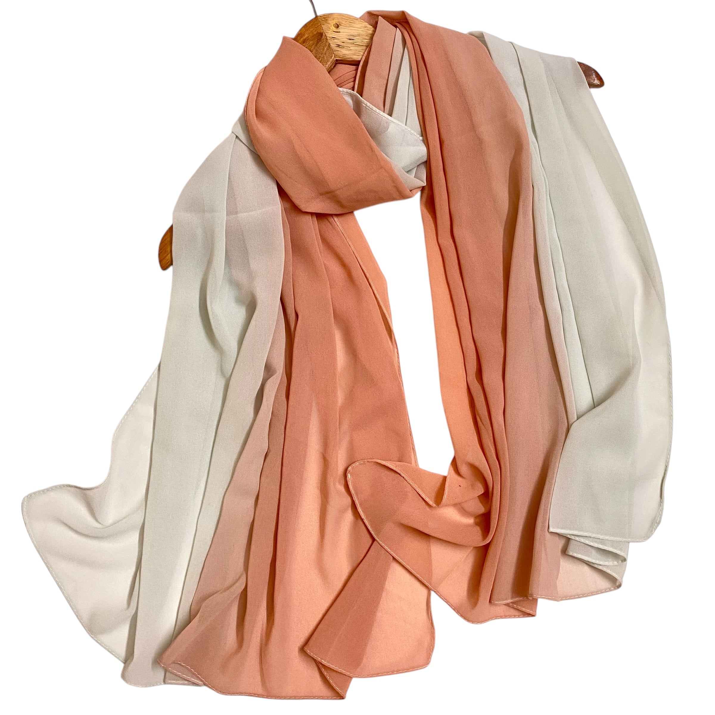 Vertically 2 tone dyed light wear chiffon hijabs with stitching on all four sides.