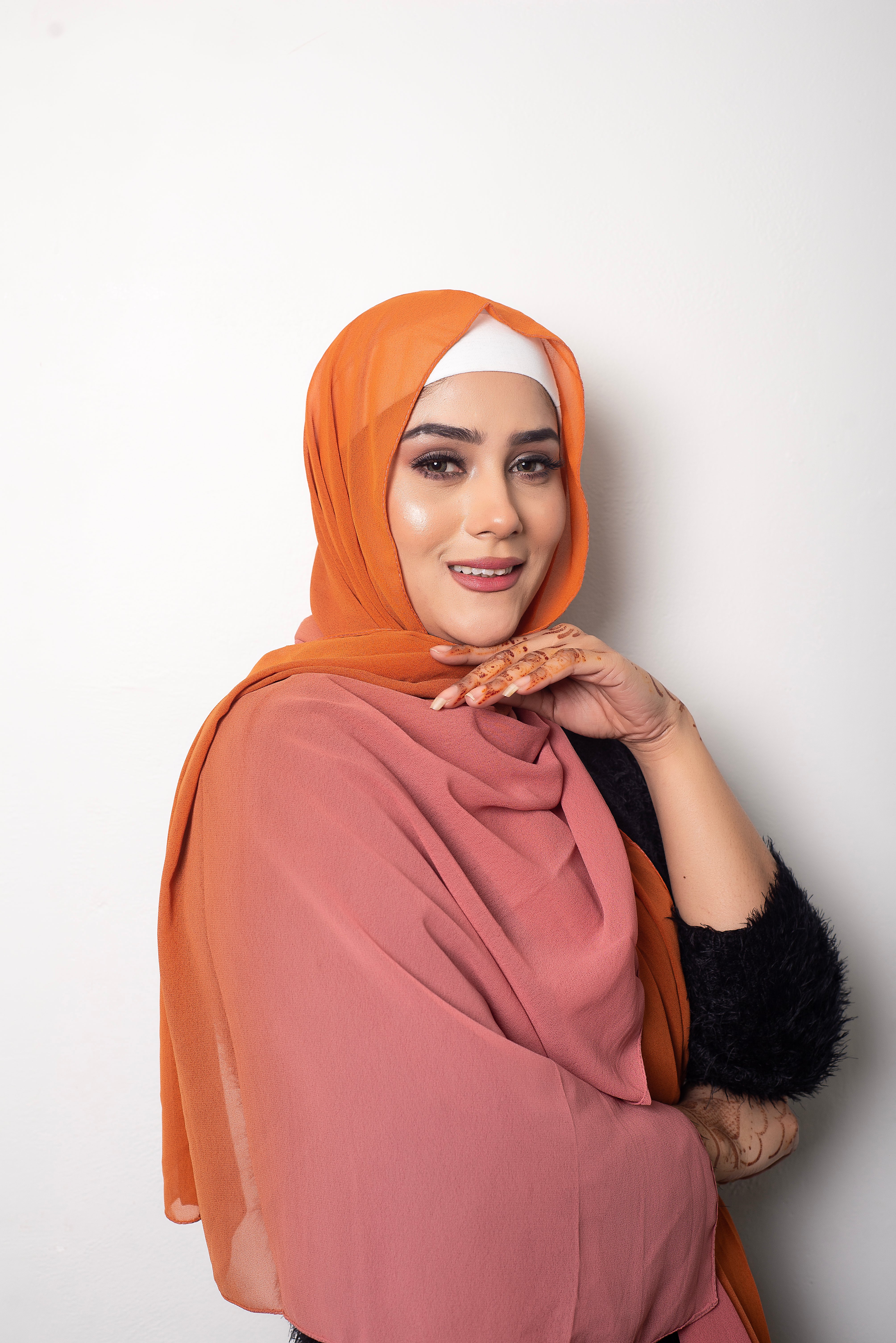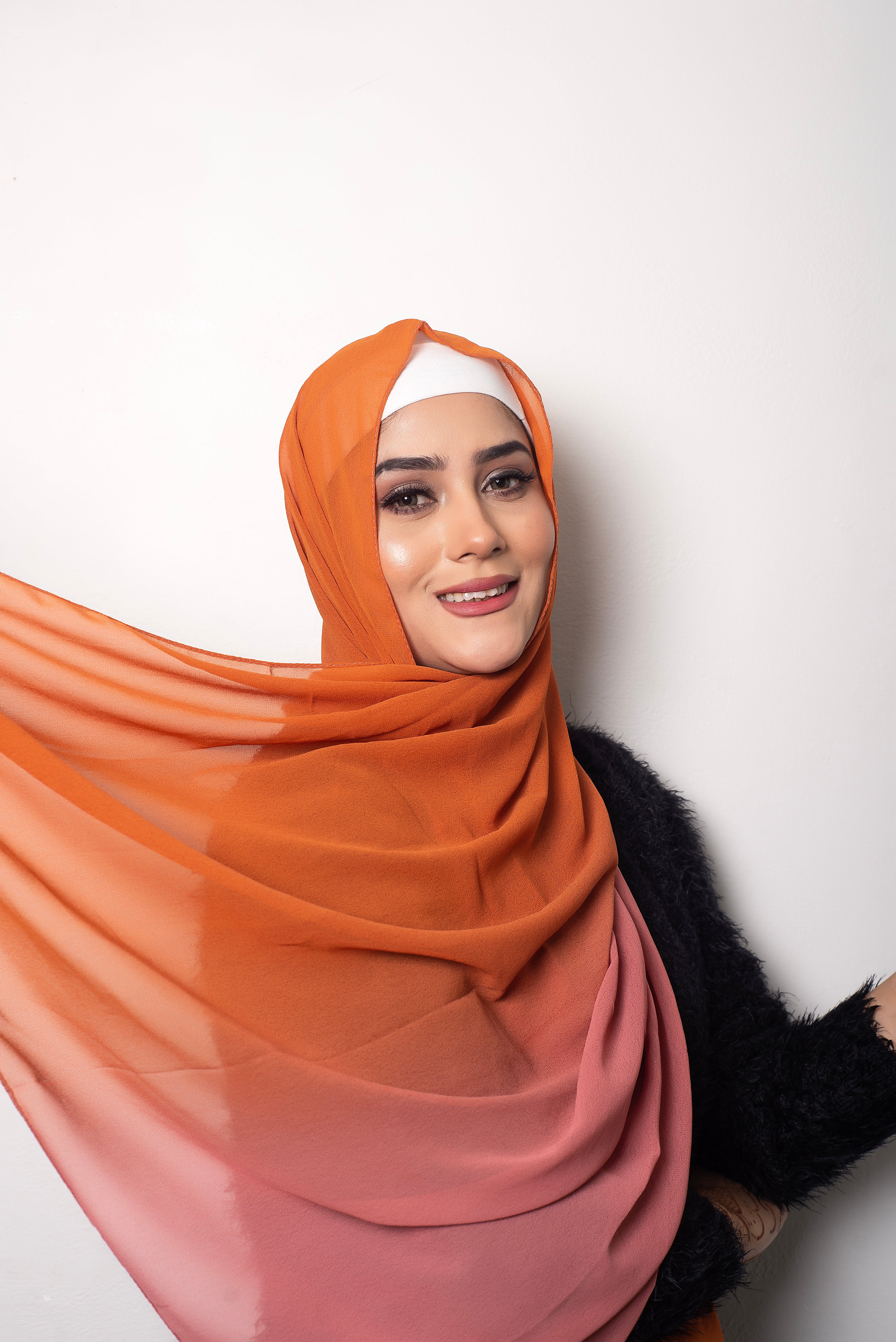 Vertically 2 tone dyed light wear chiffon hijabs with stitching on all four sides.