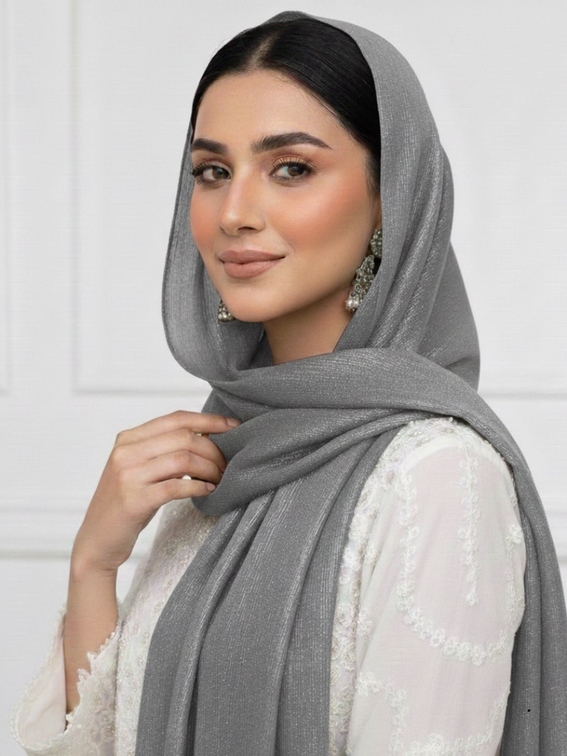 Gleamz Crinkle Silk Hijab – Grey Gleamz Crinkle Silk Hijab – Grey