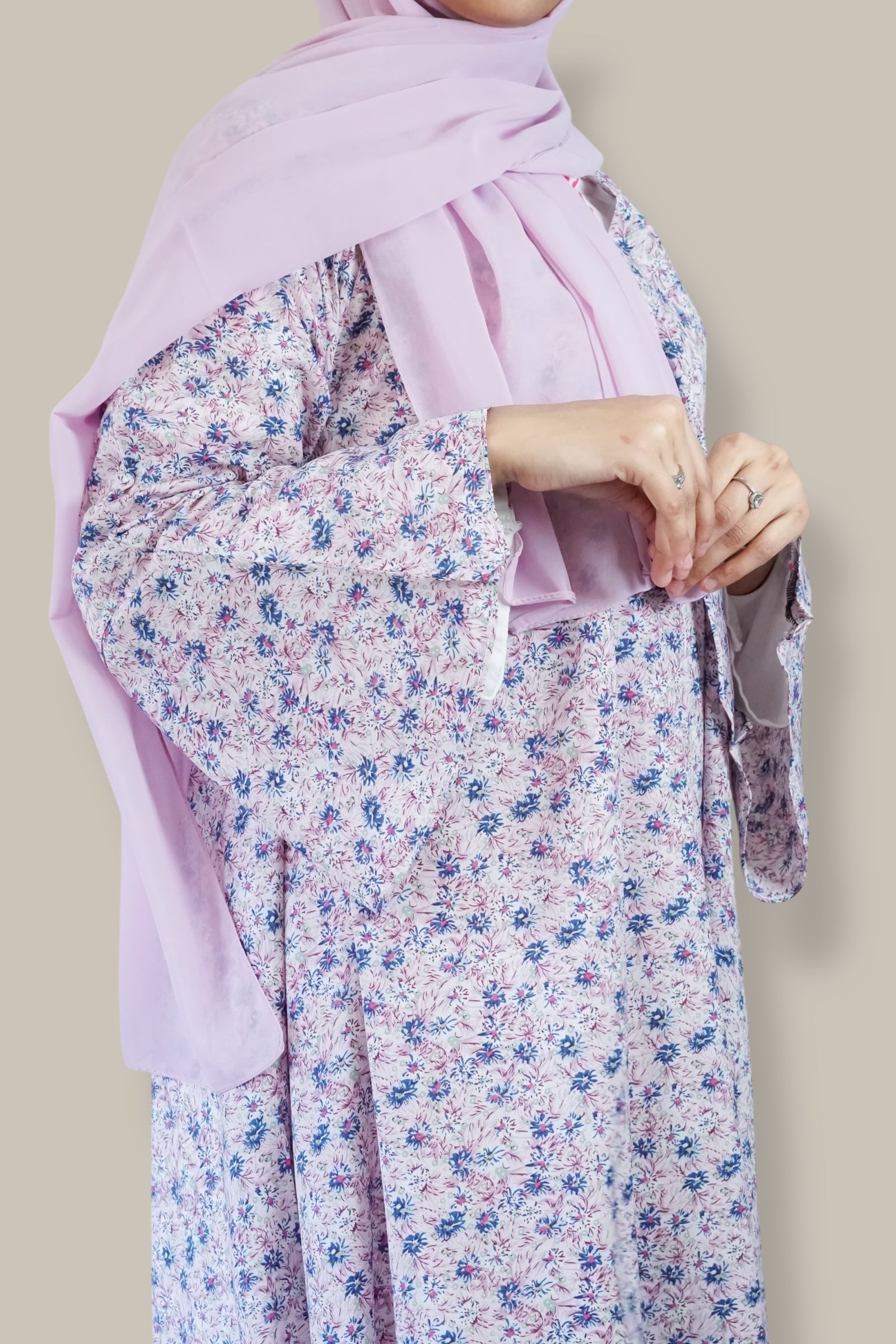 Washing: Hand wash in cold water with a mild detergent is highly recommended for all items, especially abayas and delicate hijabs. If using a machine, select a Delicate/Gentle cycle and use a laundry bag.