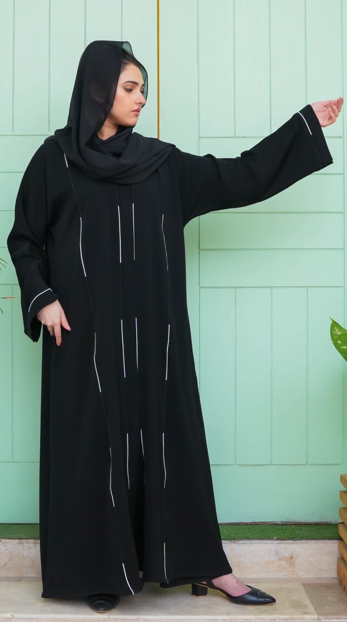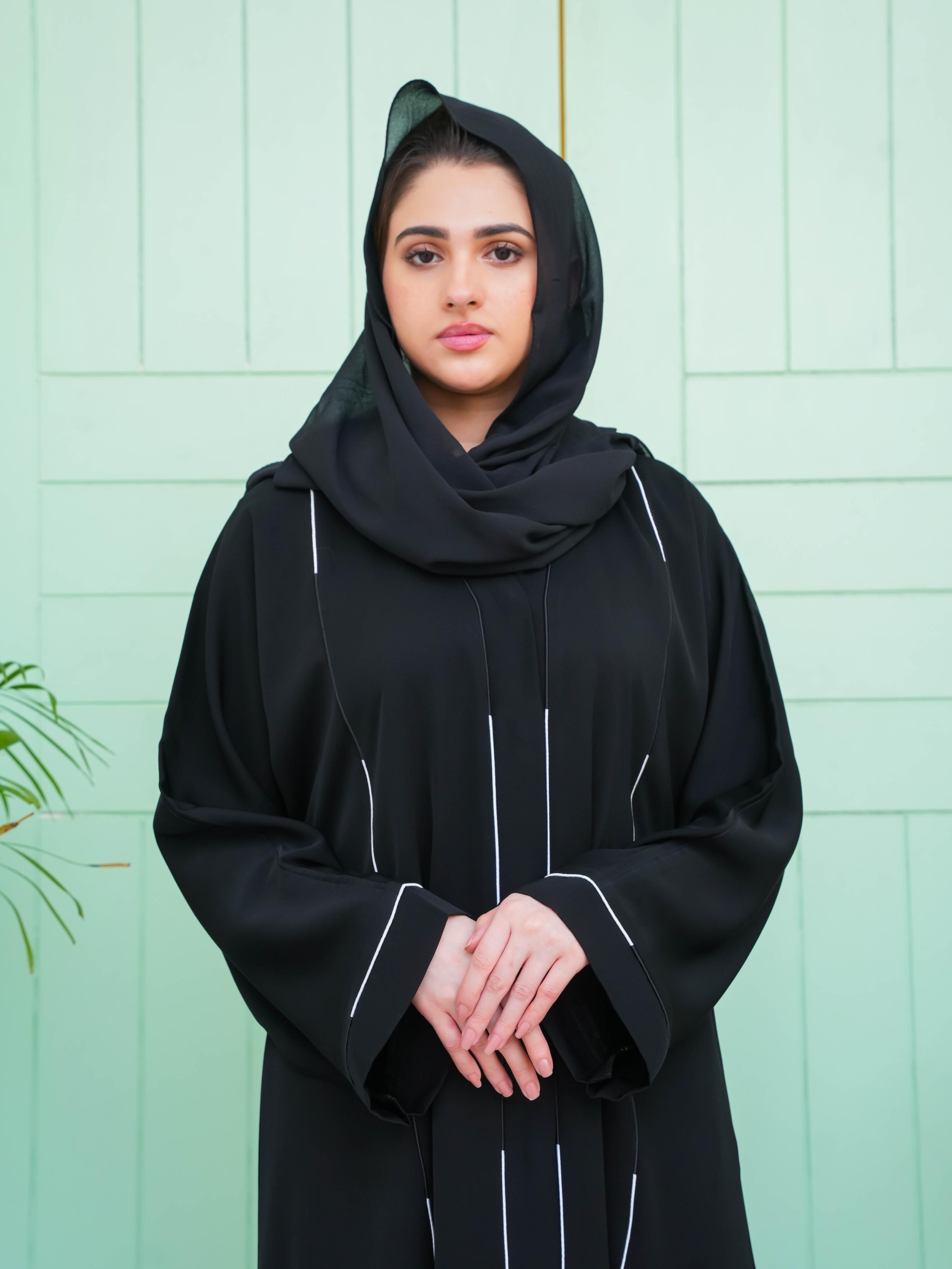 Linia Piping Abaya - Black & White Piping (With Free Delivery)