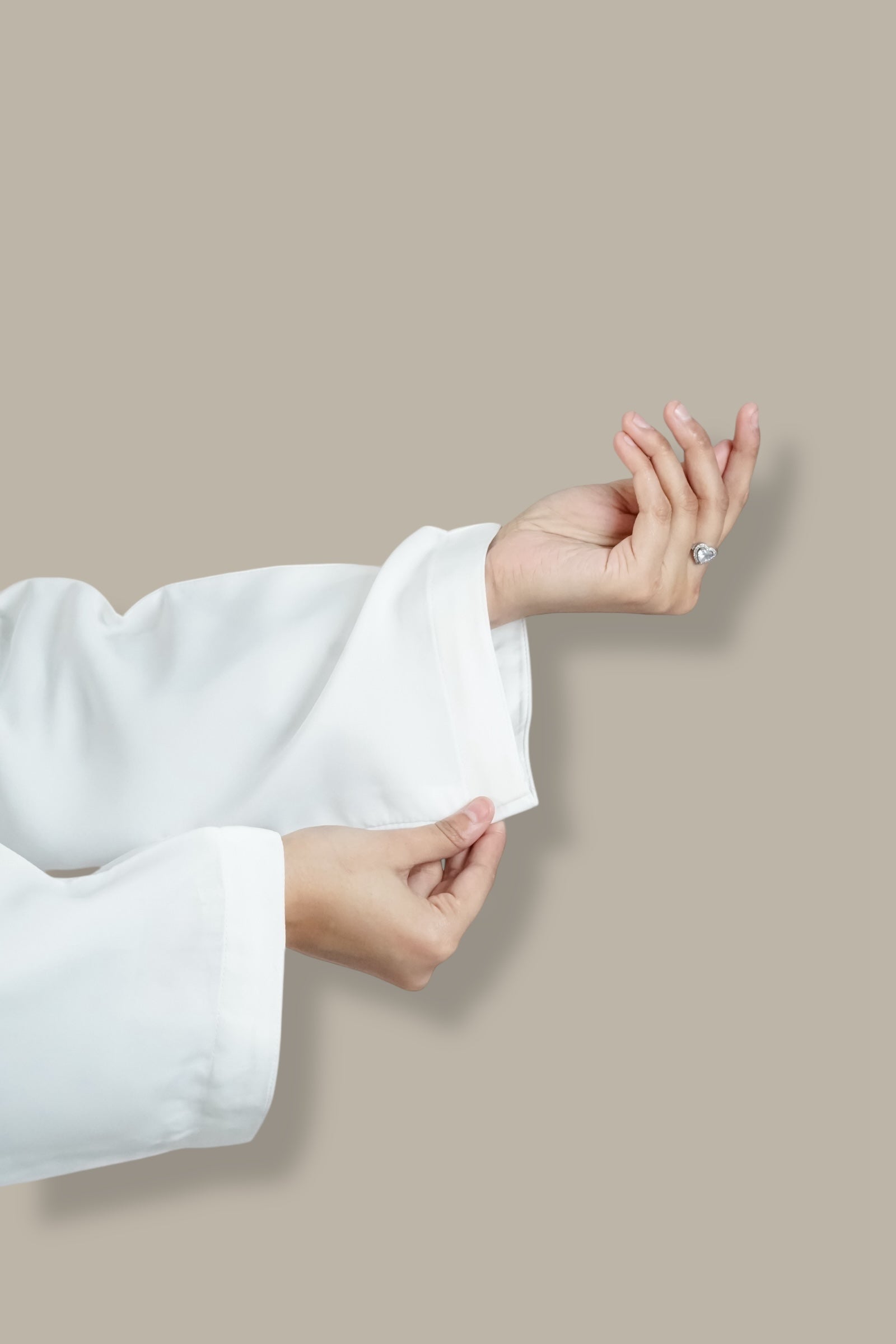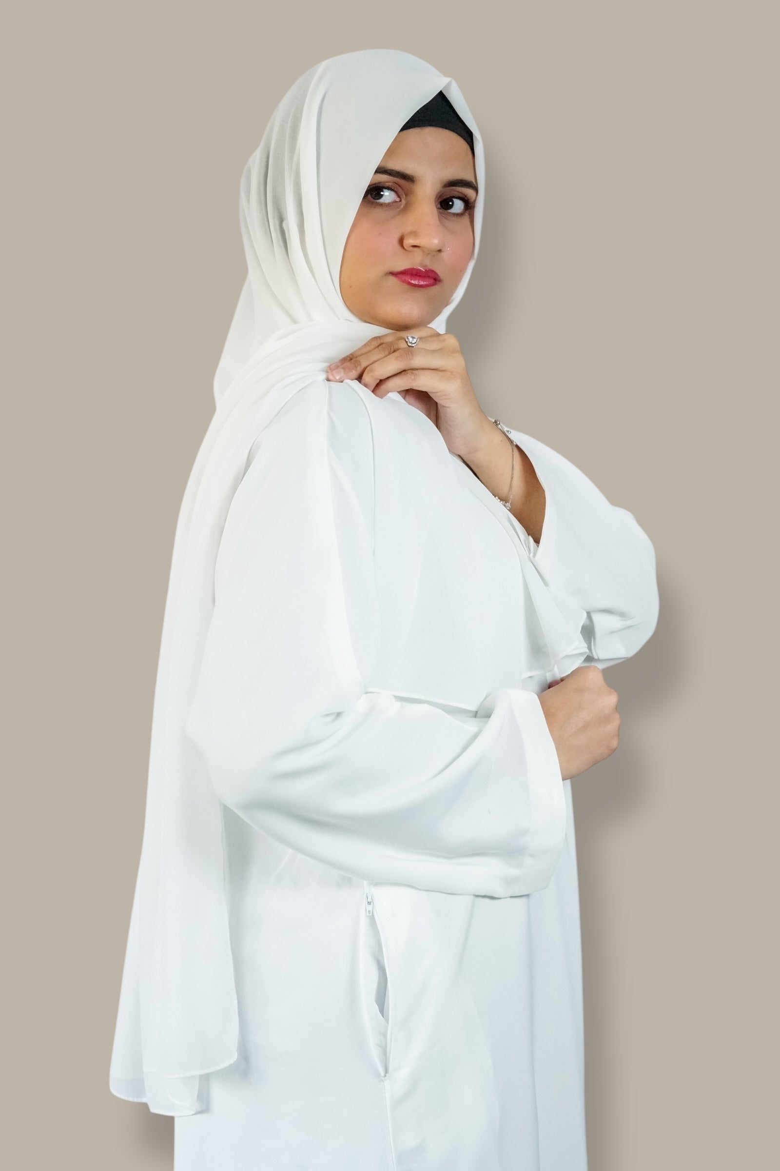 Mirage Abaya - Pearl White (Front Open) Mirage Abaya - Pearl White (Front Open)