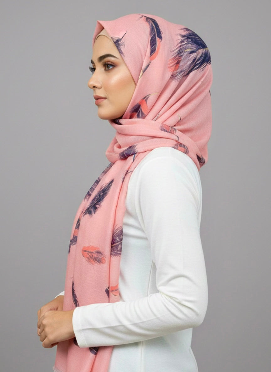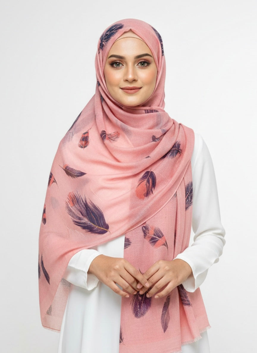 Plume hijabs have a beautiful leaf design all over them, and their edges shine with a special foil touch, adding an extra dose of fabulousness! They're just perfect for parties!