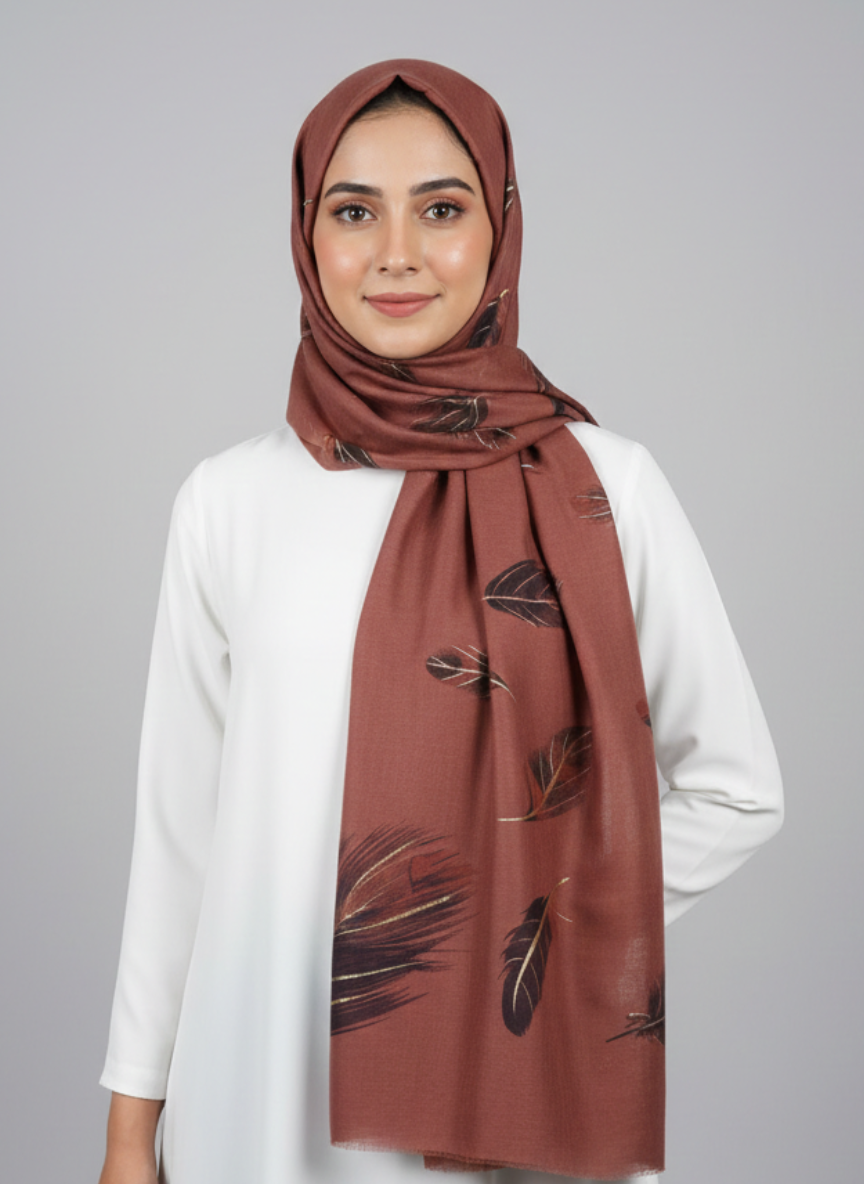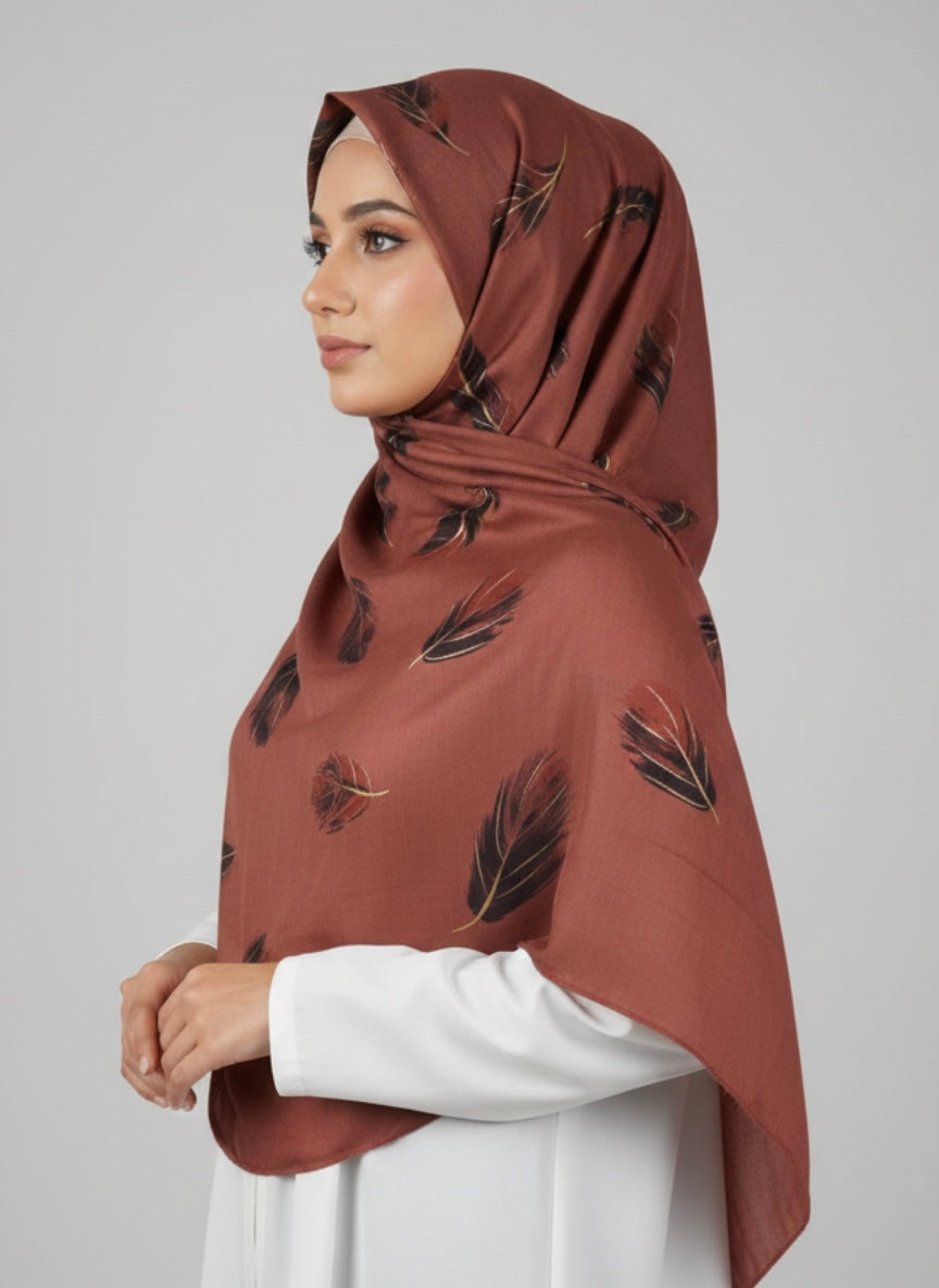 Plume hijabs have a beautiful leaf design all over them, and their edges shine with a special foil touch, adding an extra dose of fabulousness! They're just perfect for parties!