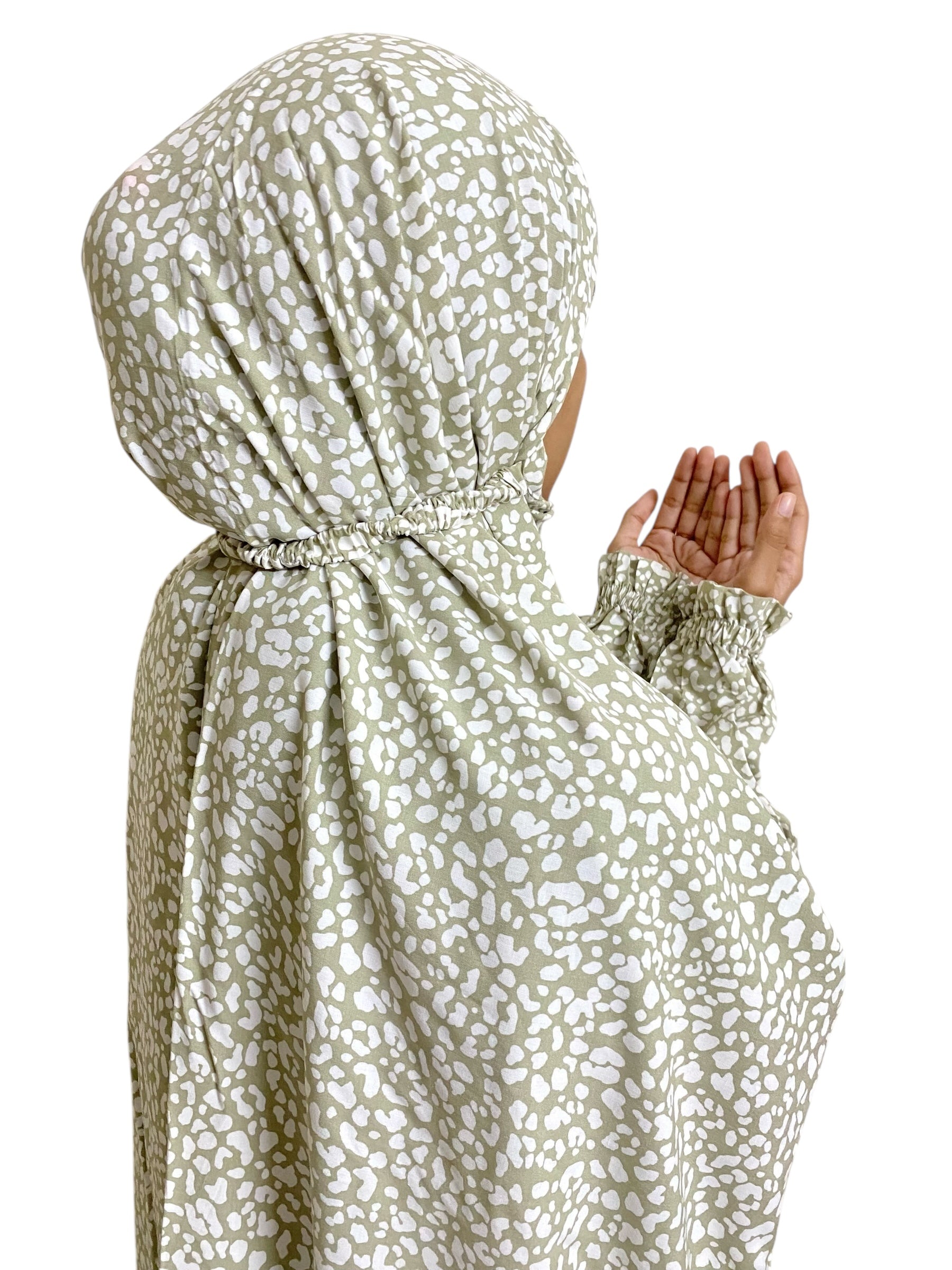 Experience prayer with ease and peace of mind with our user-friendly Namaz Chadar with sleeves. – the perfect choice for complete coverage during prayer. This chadar is designed to cover you from head to toe, ensuring you feel fully covered and modest. The elastic sleeves add extra comfort, allowing you to move easily while performing your prayers. With an elastic band outside, You can be confident that the chadar will stay in place and won’t shift or uncover your hair during namaz. We’ve also included an additional chin area for proper coverage of this important part.