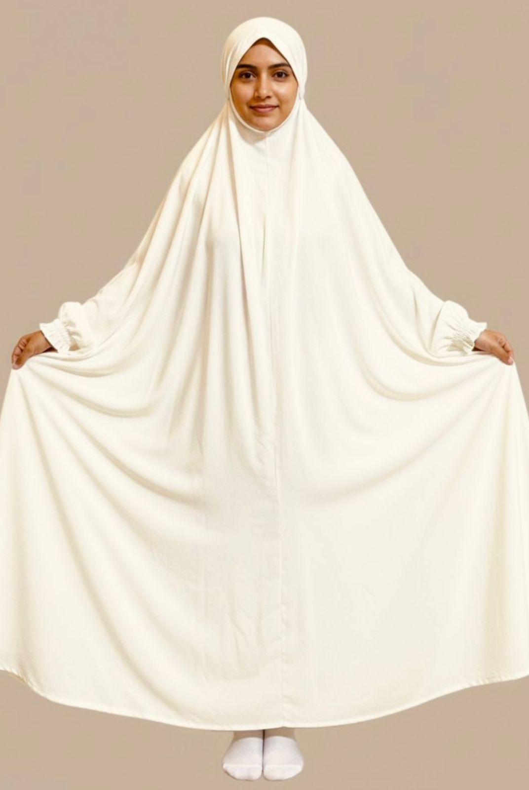 Premium Full Length Umrah & Namaz Chadar With Sleeves - Cream White (Imported Fabric)
