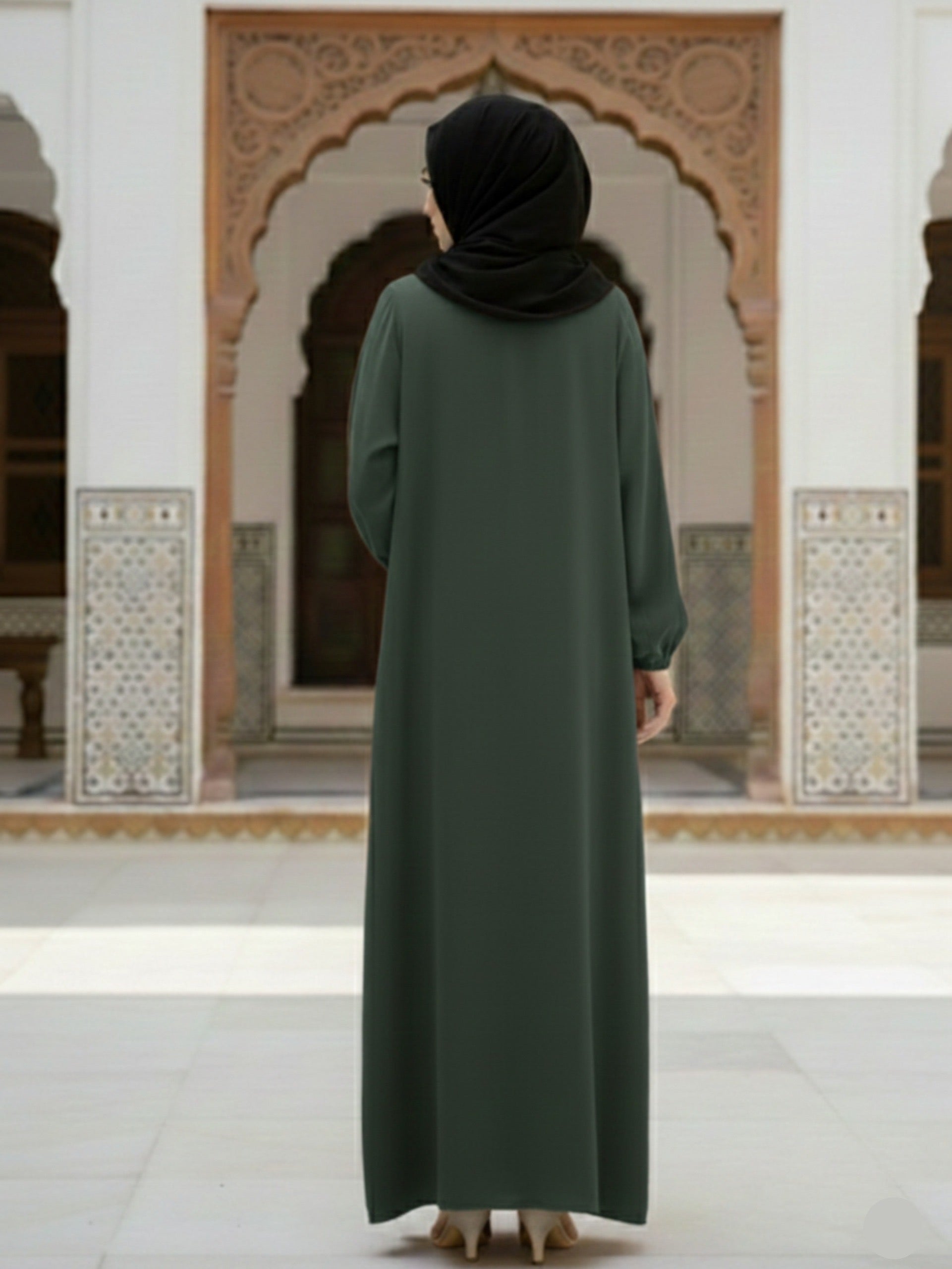 Experience ultimate comfort and modesty with this lightweight Cey fabric abaya, featuring a front close and flattering chest pleats. It's perfect for daily use, office, or college wear, offering full coverage for those days when you're simply too lazy to change clothes.